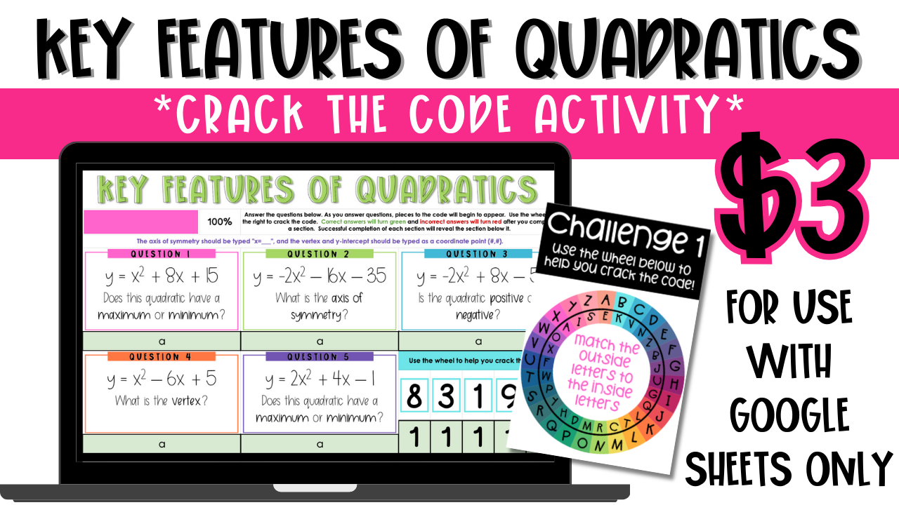 Here's how they work: Students will start working on the first set of questions. As they work, pieces to their "code" will begin to appear. Using the provided challenge wheels, students will attempt to crack the code. The activity is self-checking. Once they have entered the code, correct answers will turn green and incorrect answers will turn red. Once a code has been cracked (answers are all correct), the next section will appear for students to work on!